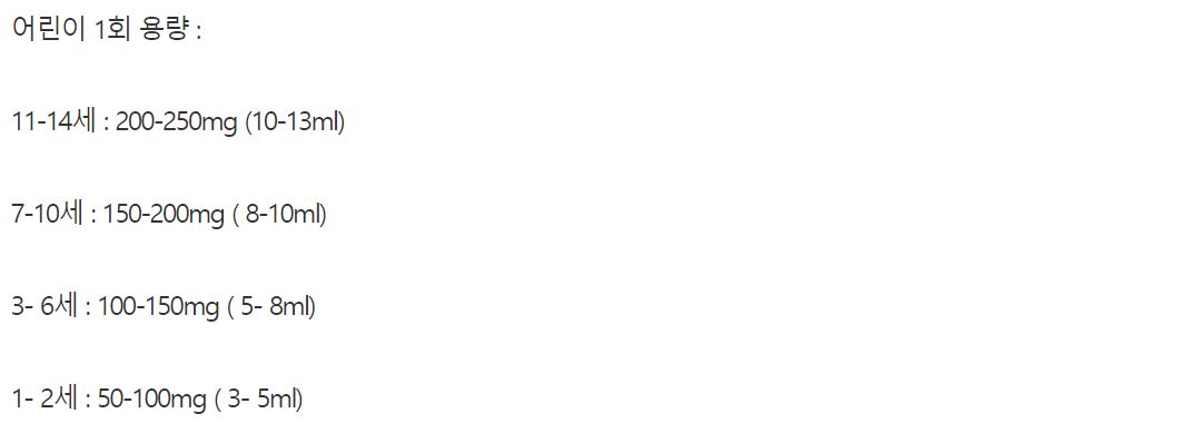 유/소아 및 어린이의 Ibuprofen의 복용법은 아래와 같습니다.