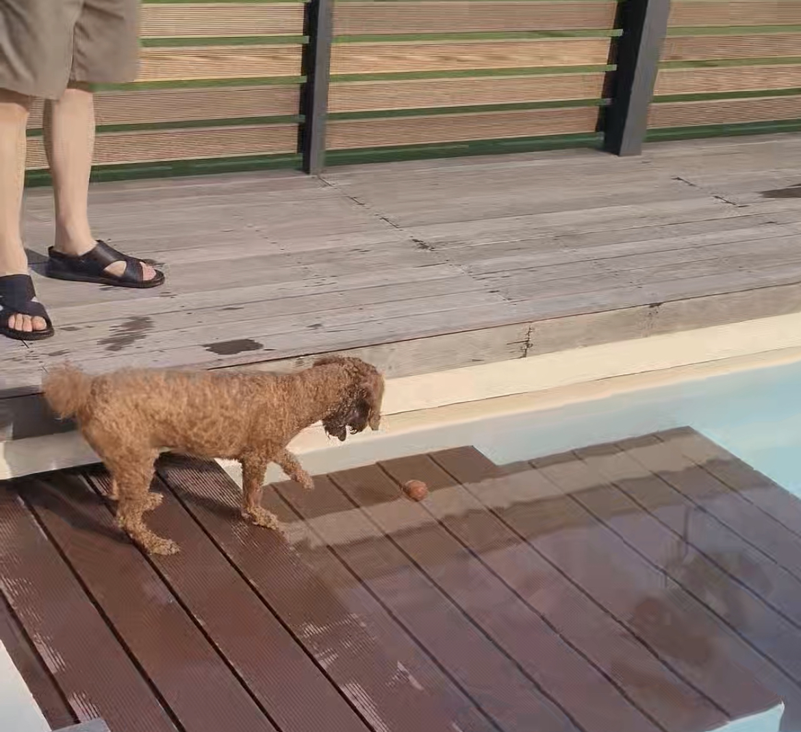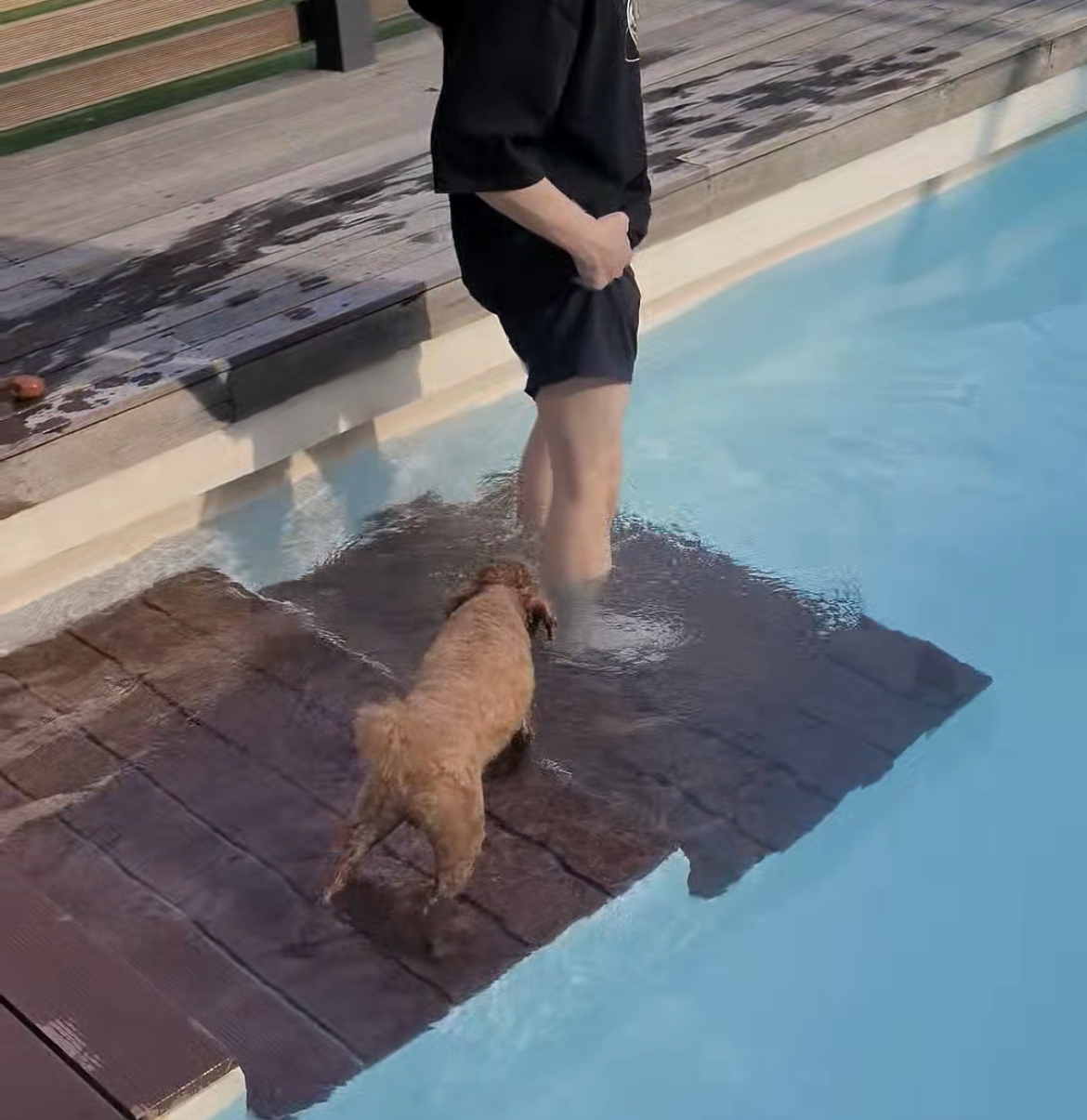 수영장에 강아지들을 위한 구명조끼는 따로 없었지만, 강아지들을 위한 계단이 설치되어 있어 수영에 적응하기 좋았다.