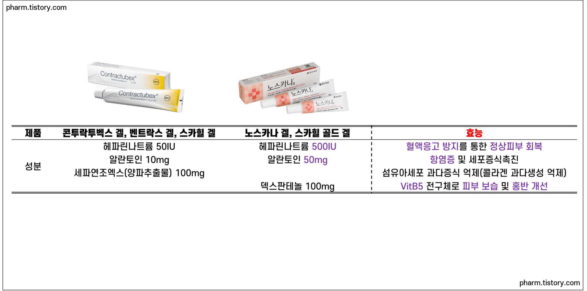 피부 상처가 증식단계로 되면서 세포가 정상적으로 회복되어야 착색되거나 흉이 지지 않는 피부로 회복됩니다. 헤파린나트륨과 알란토인, 양파추출물 성분은 (수술로 생긴) 상처를 정상적인 피부로 회복되는 것을 도와줍니다.