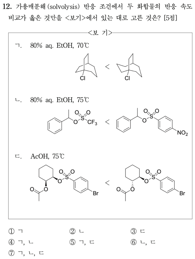 ㄷ. Cis-, Trans-Brosylate 유도체의 반응속도를 비교할 수 있는지 확인하는 문제이다.