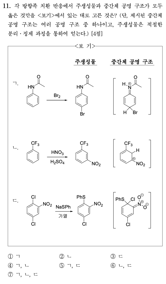 ㄴ. meta 자리에 치환되는 것은 맞지만 공명중간체 구조가 옳지 않다. 아래와 같은 구조가 올바른 표현이다. (X)