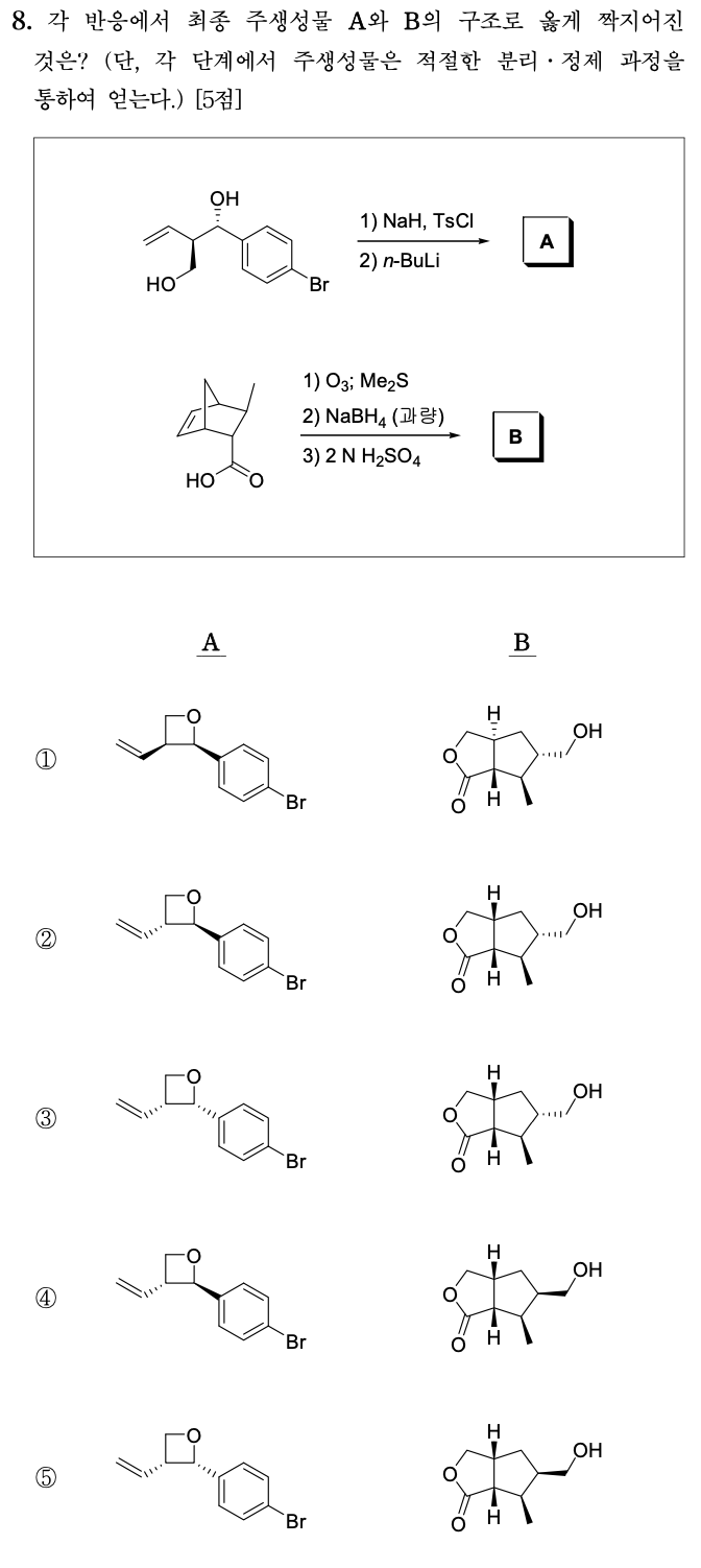 A, B 화합물을 다음과 같이 돌려서 풀면 간단하게 풀 수 있다.