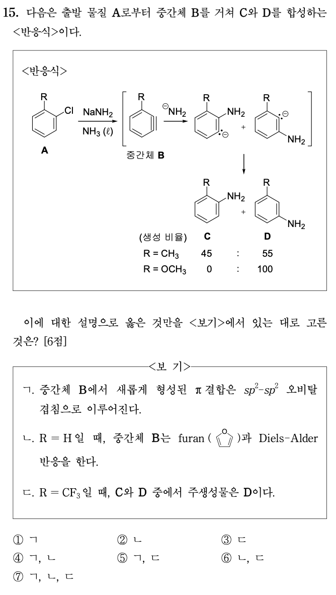 ㄱ. Benzyne은 3중결합을 가지고 있지만 sp2-sp2 오비탈 중첩으로 이루어져 있다. (O)