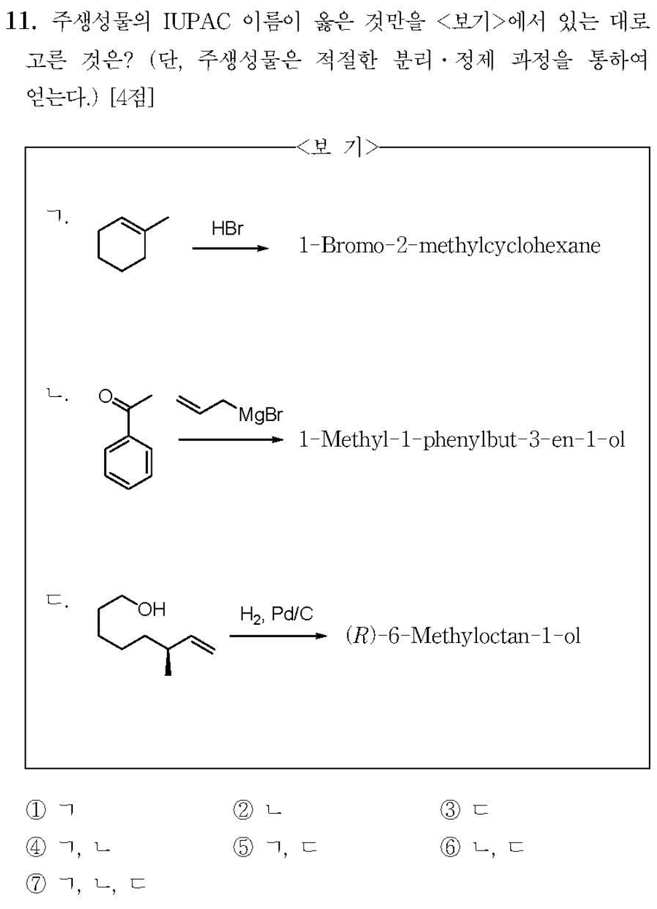ㄱ. HX첨가 반응은 Markovnikov's rule에 의해 반응된다.