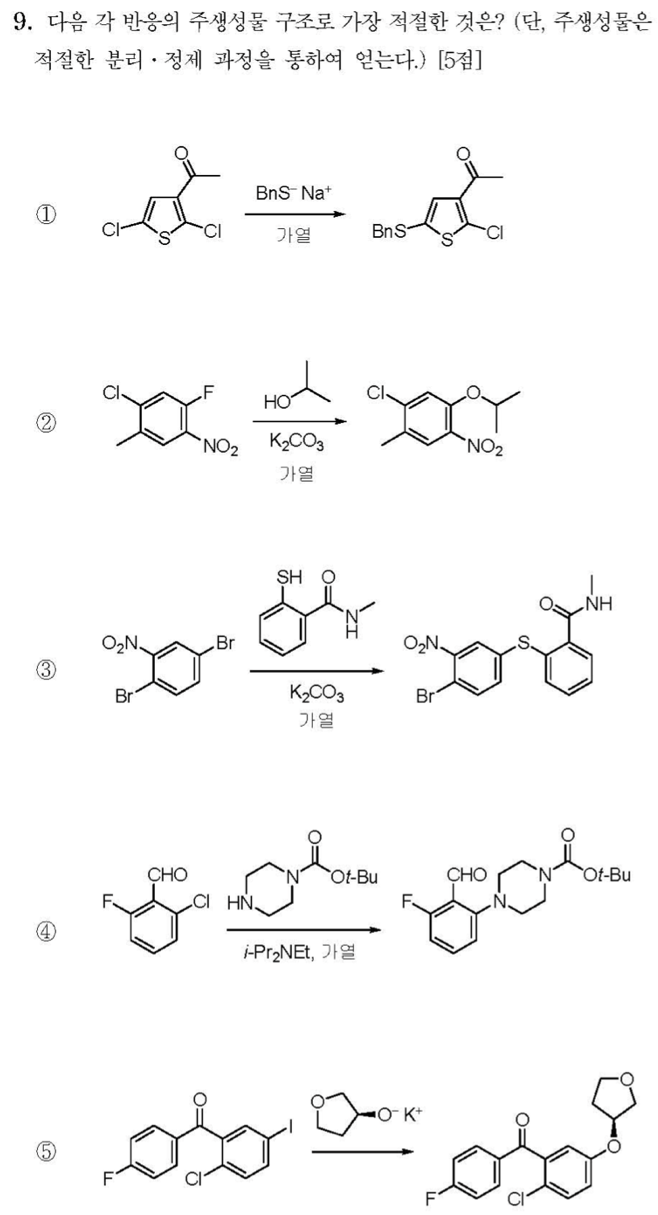 4), 5) SNAr reaction은 F>Cl>Br>I 순으로 반응성이 높다. EWG의 갯수보다 Halogen의 차이가 주요한 판단 기준이다. (X)
