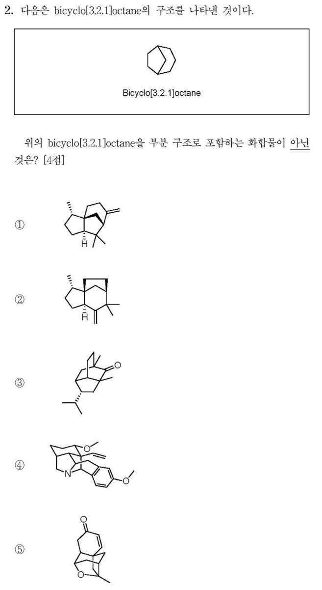 4번 구조는 bridge 탄소가 포함된 bicyclo[3.2.1]octane 구조가 포함되어있지 않다. (bridge 질소)