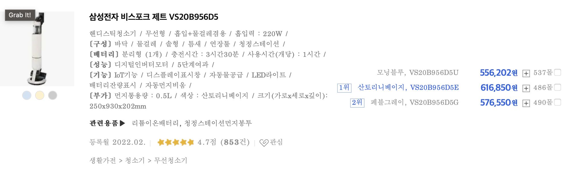 [6] 삼성 비스포크 제트 청소기(VS20B956DE) 구매후기-장단점