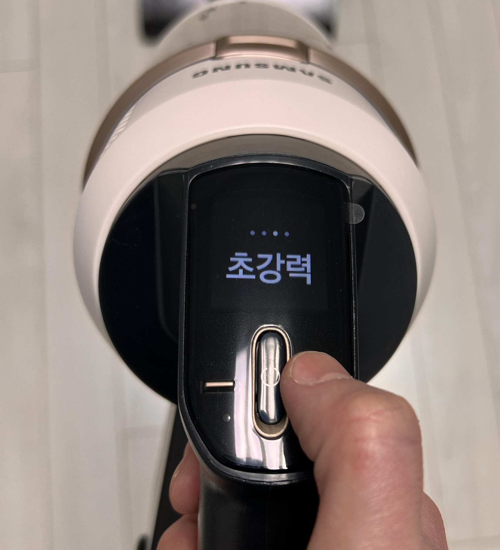 일반 << 강력 < 초강력 < 제트 순의 세기였고, 다이슨 청소기에서의 강한 강도에서 처럼 초강력 강도에서부터 바닥에 밀착되는 흡입력이 느껴졌다.