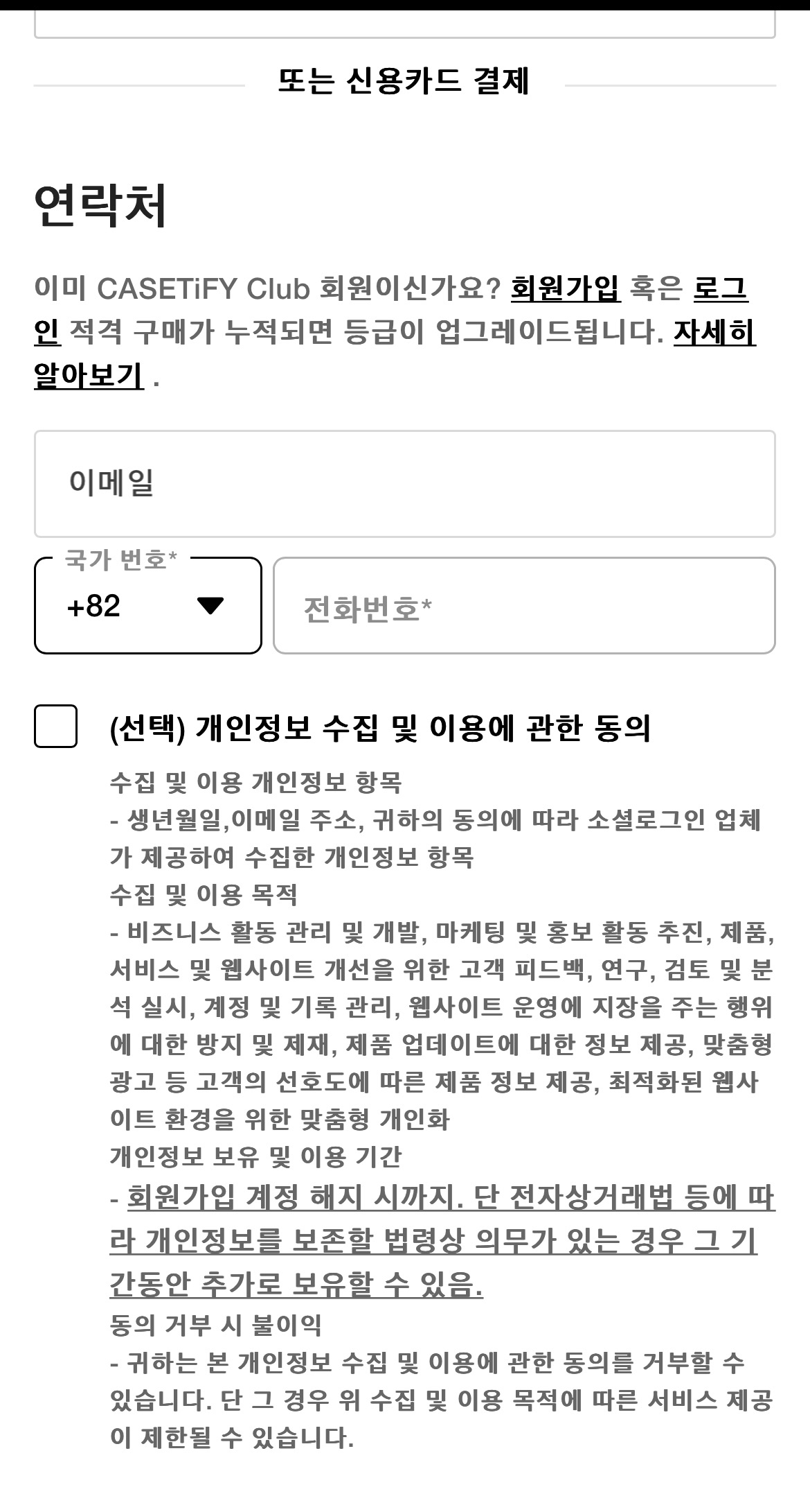 연락처는 일단 적고, 개인정보 동의를 할지 말지 생각.