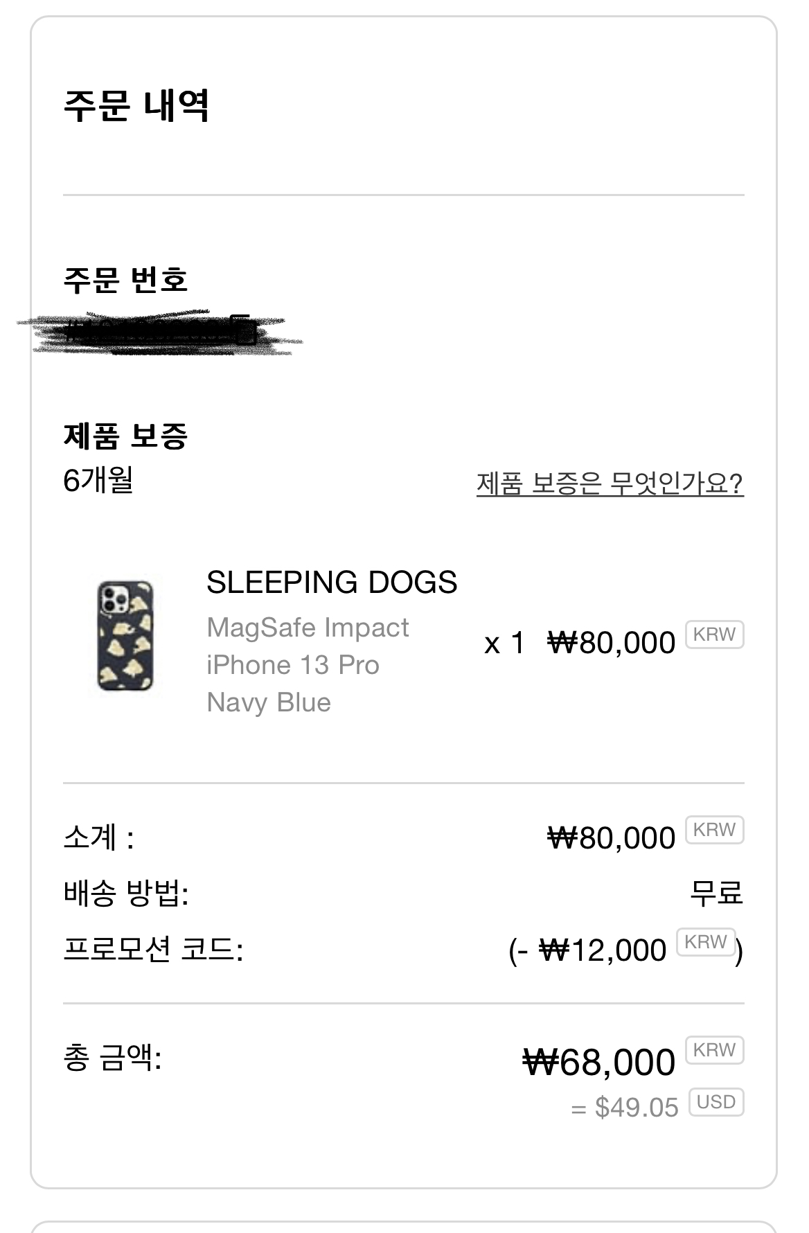 위 주문 내역은 실제로 내가 주문한 케이스 내역이다.
