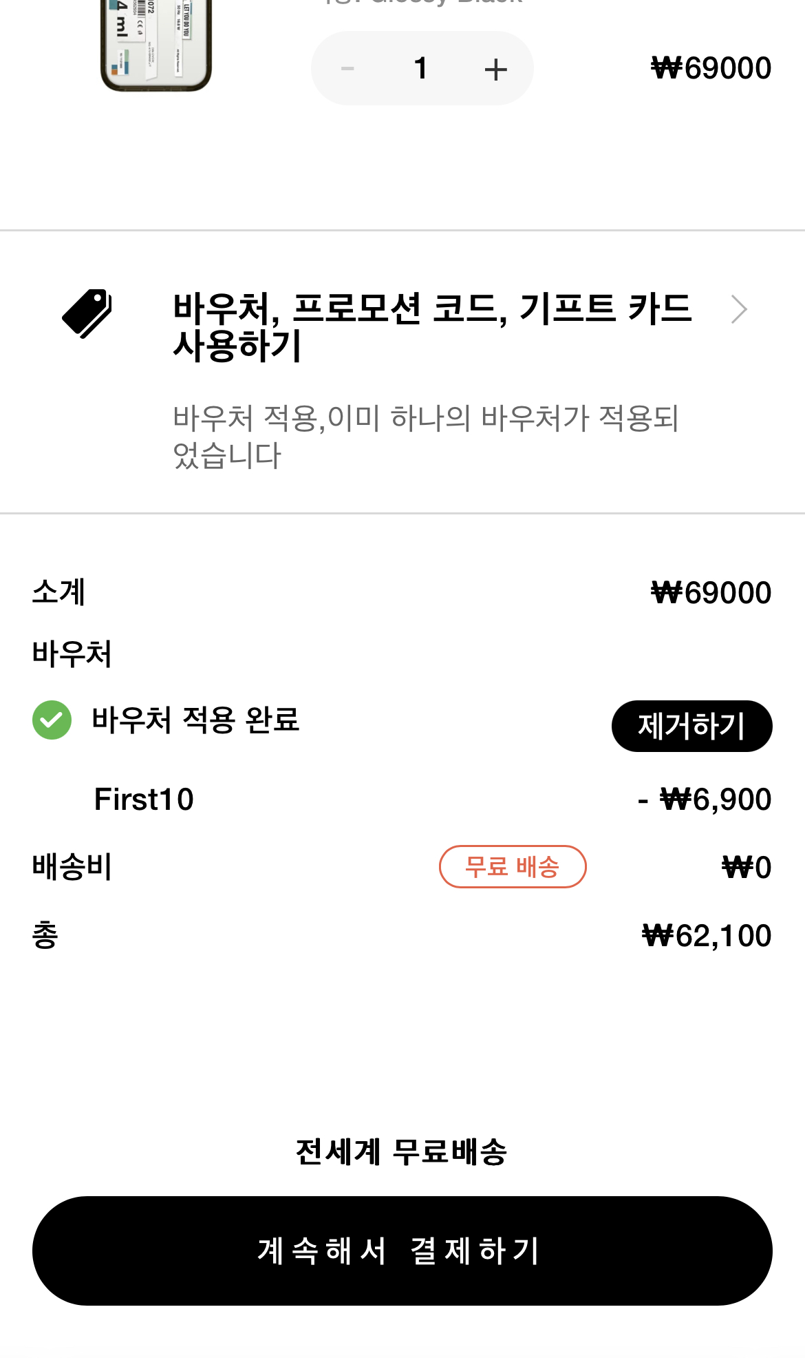 할인 코드가 적용이 되면, 할인율이 적용된 결제금액이 뜨게 된다.
