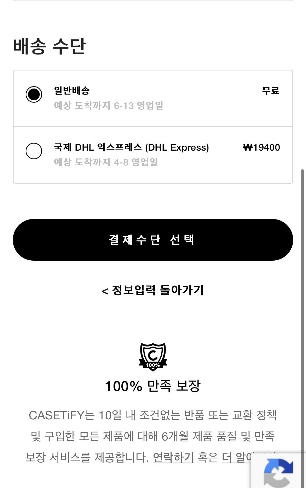 나는 그 정도는 아니었기 때문에 일반 배송을 선택했다.