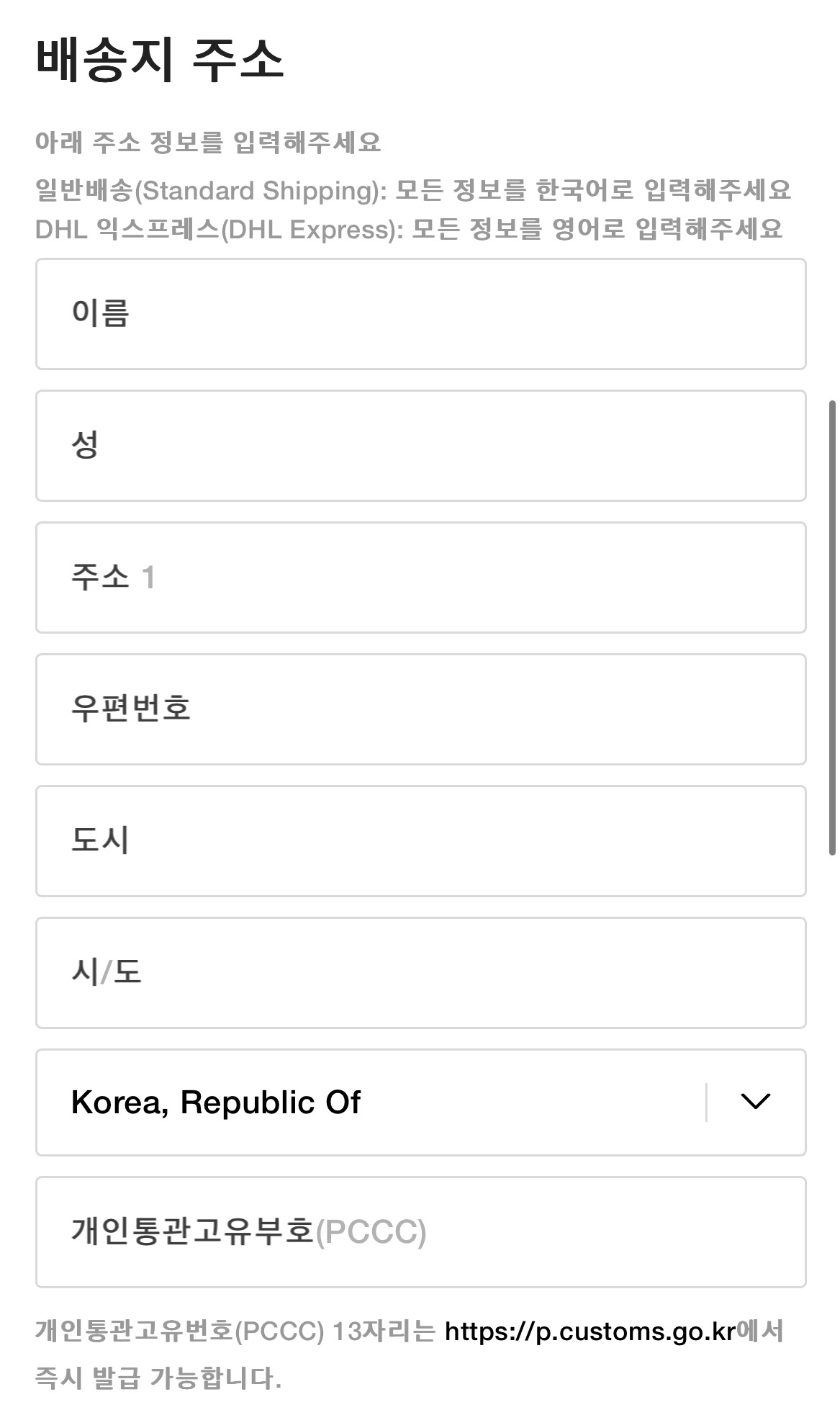 배송이 빠르지만 비싼 국제 DNL 익스프레스를 통해 케이스를 받을 경우 주소는 영어로 적고, 일반 배송은 한국어로 적어야 한다.