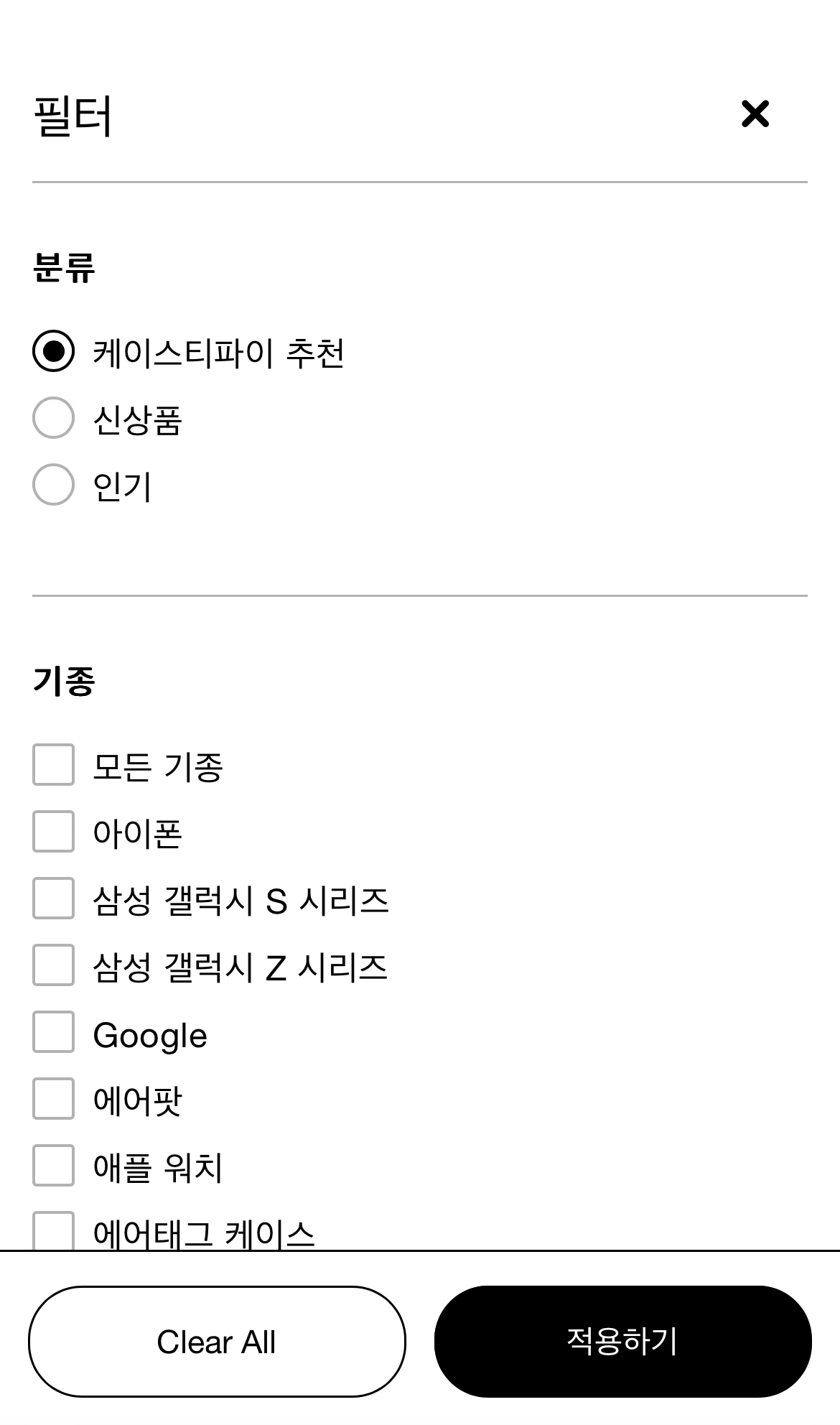 필터를 이용해 내가 원하는 디자인을 빠르게 찾을 수 있다.